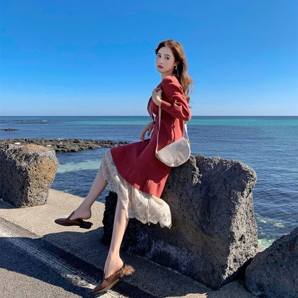 长款仙女裙子配大衣的内搭毛衣裙过膝红色针织打底裙连衣裙女秋冬