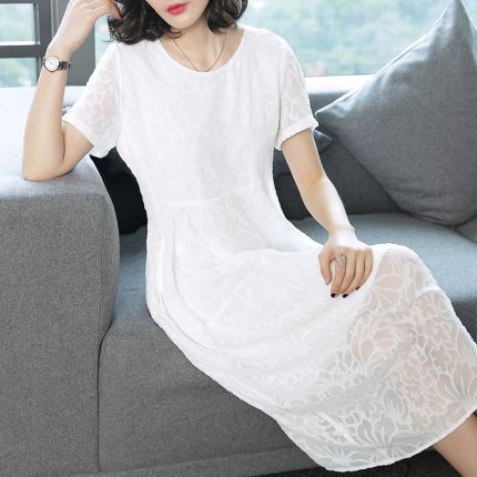 白色雪纺连衣裙女夏天2020新款气质大码女装遮肚显瘦减龄仙气长裙